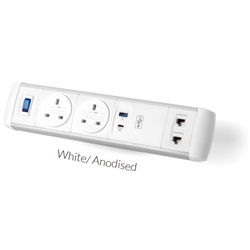 PEBBLE Desk-Top Module With: 1m To GST Connector |4 x Fused UK Socket (Type G) |USB Type A Charging & USB Type C Charging (20W TOTAL) |RJ45 CAT6 Data 2m |Desk Clamp |WHITE/WHITE
