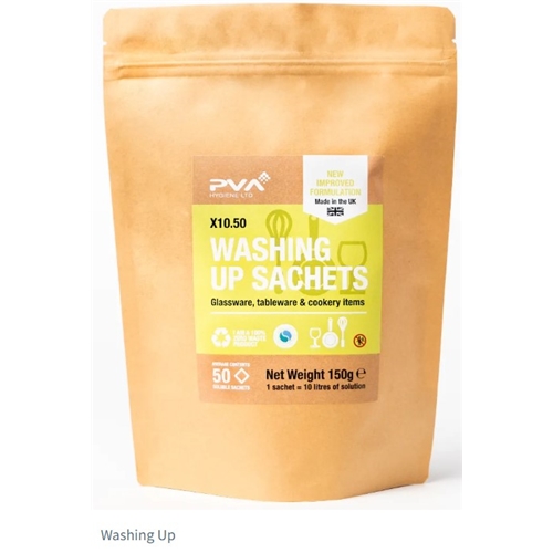 An easy-to-use measured, single dose sachet that makes up to 10 litres of solution. No-waste product that cleans and refreshes glassware, tableware and cookery items.